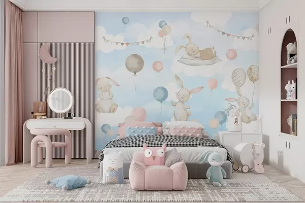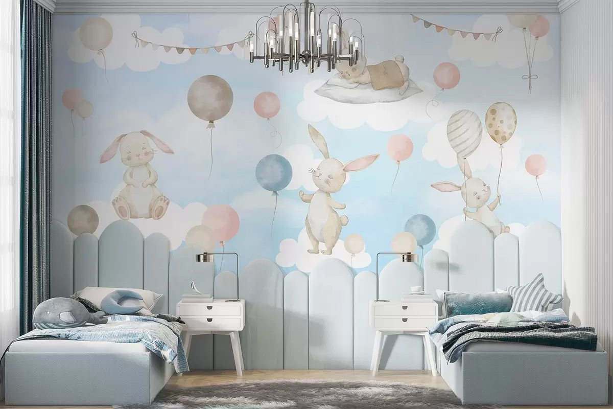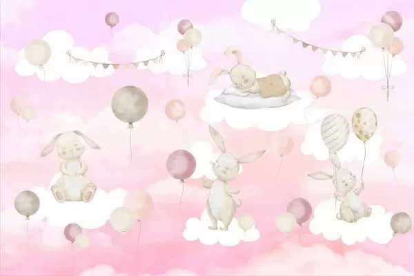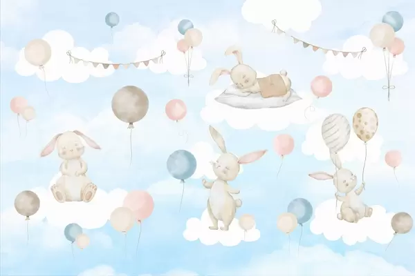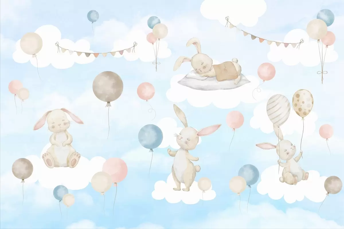 Fotomurales Conejos con globos sobre nubes Nr. w04337