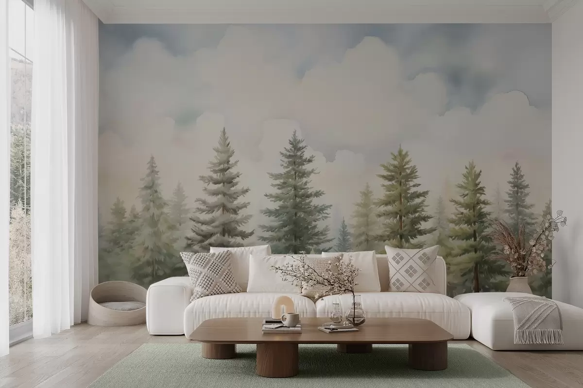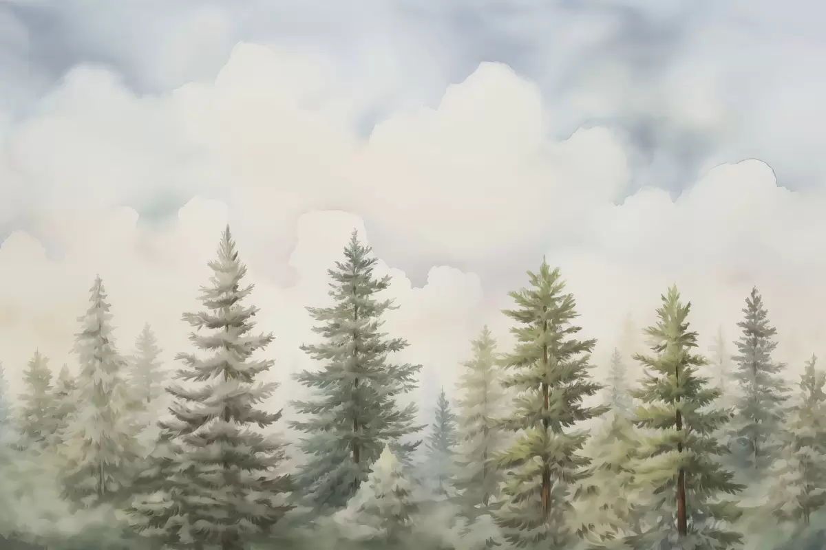 Fotomurales Pintura imitación bosque de coníferas Nr. w04414