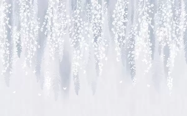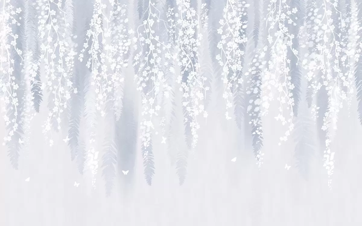 Fotomurales Fresca versión azul de ramas con flores blancas Nr. w04417v2