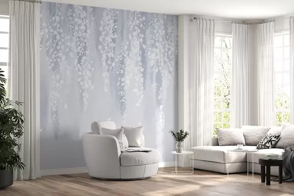 murales de pared Fresca versión azul de ramas con flores blancas w04417v2