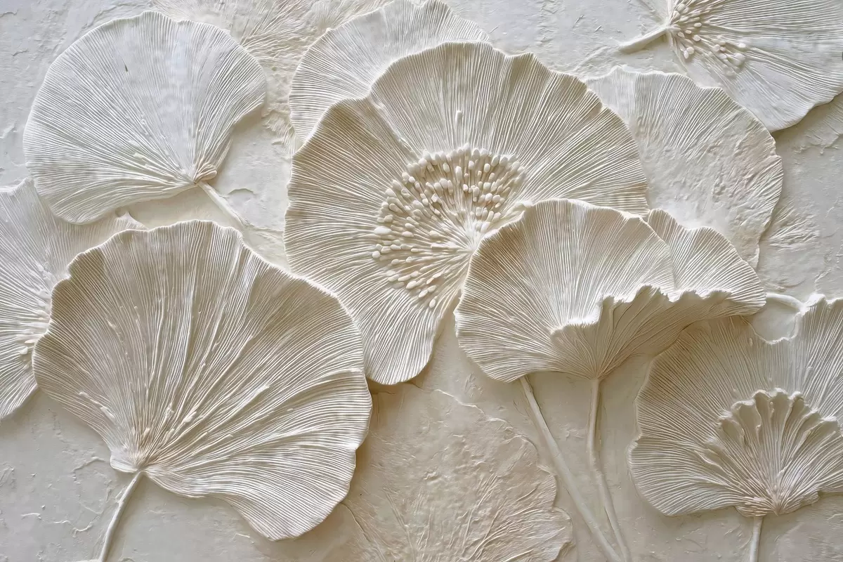 Fotomurales Voluminosas hojas de ginkgo en ligero relieve Nr. w04444