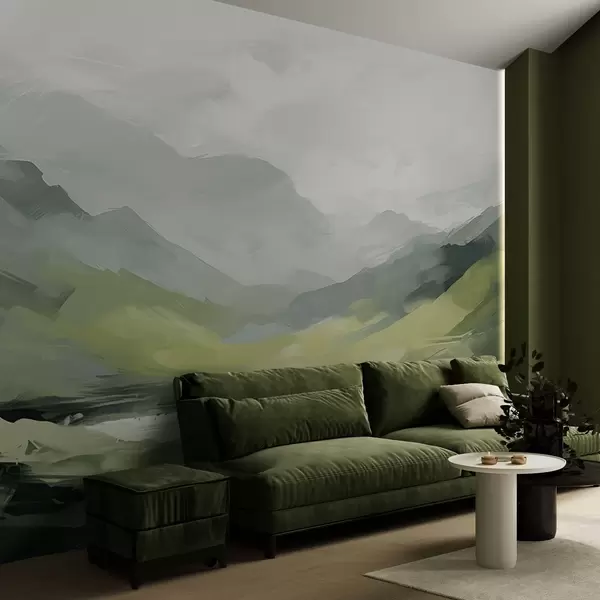 murales de pared Paisaje montañoso abstracto en tonos verdes w04447