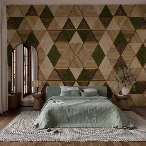 Fotomurales Adorno geométrico de madera con musgo Nr. w04459