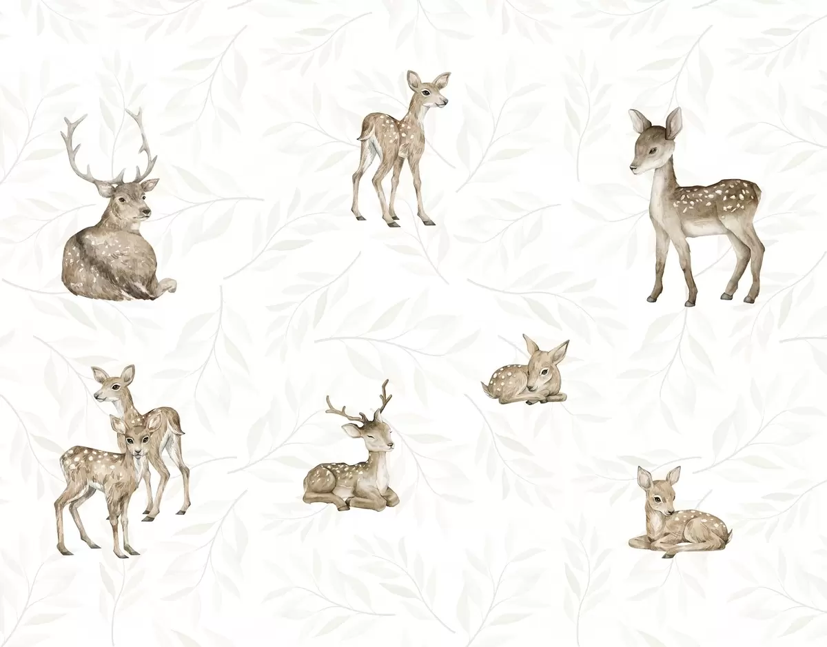 Fotomurales Lindos cervatillos sobre un fondo claro con ramitas Nr. w04461