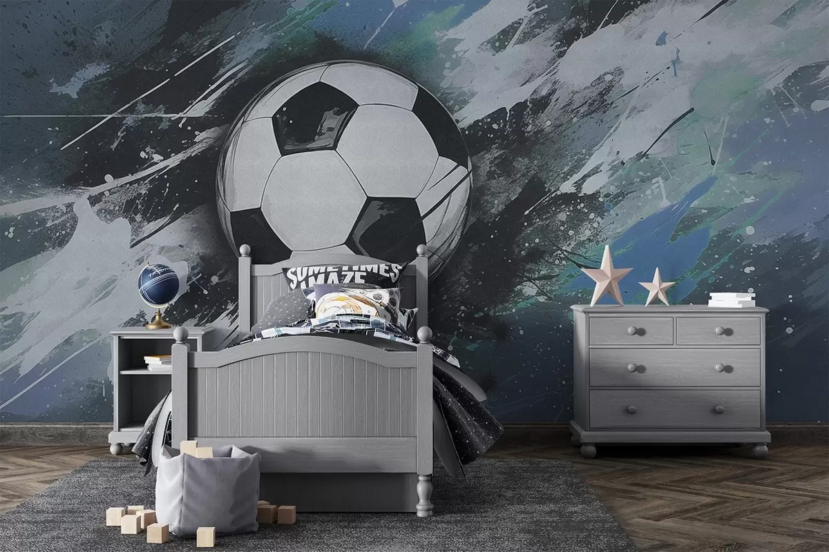 Fotomurales Balón de fútbol con un graffiti borroso de fondo Nr. w04467v1