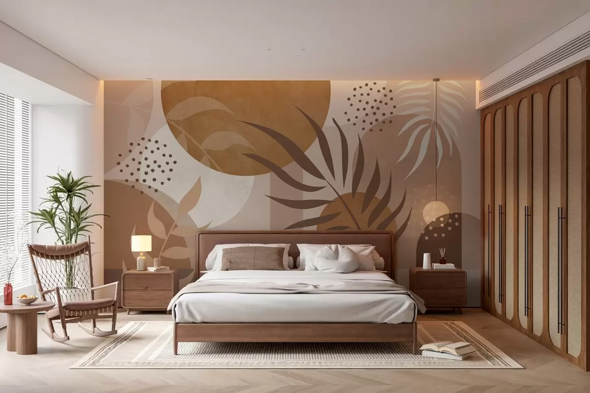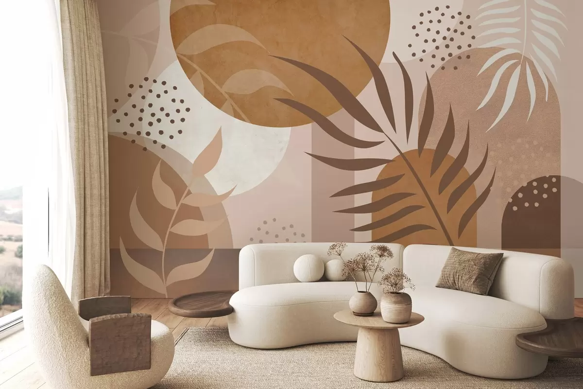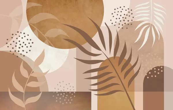 Fotomurales Abstracción contemporánea con plantas en tonos marrones y beige Nr. w04497
