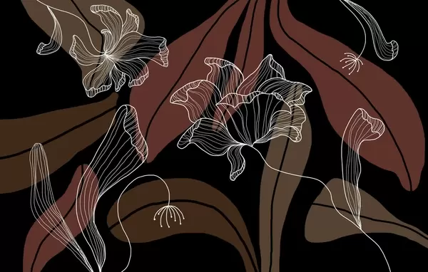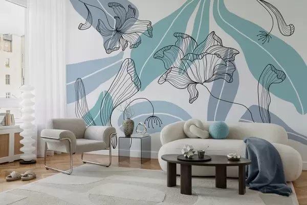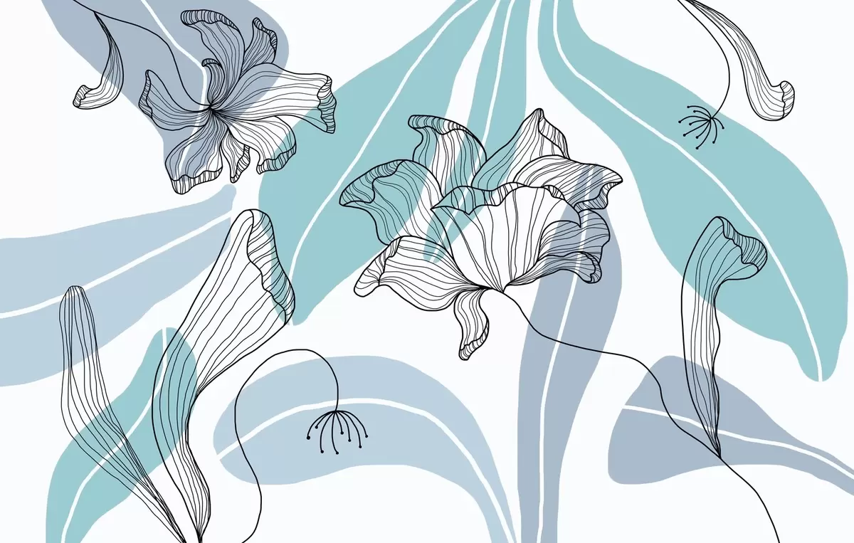 Fotomurales hojas y flores abstractas en tonos azules Nr. w04499v2