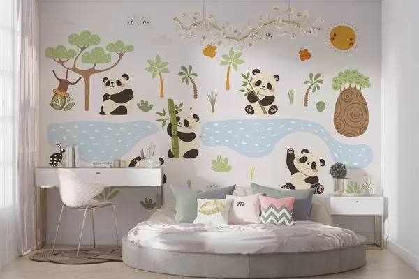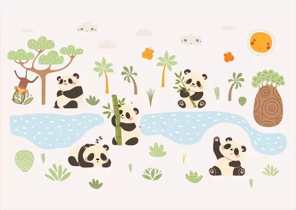 Fotomurales Pandas alegres junto al río Nr. w04541