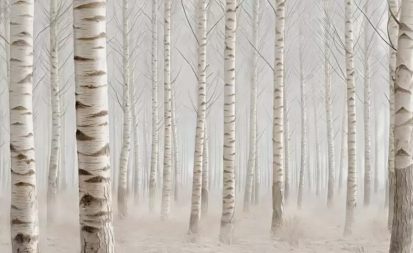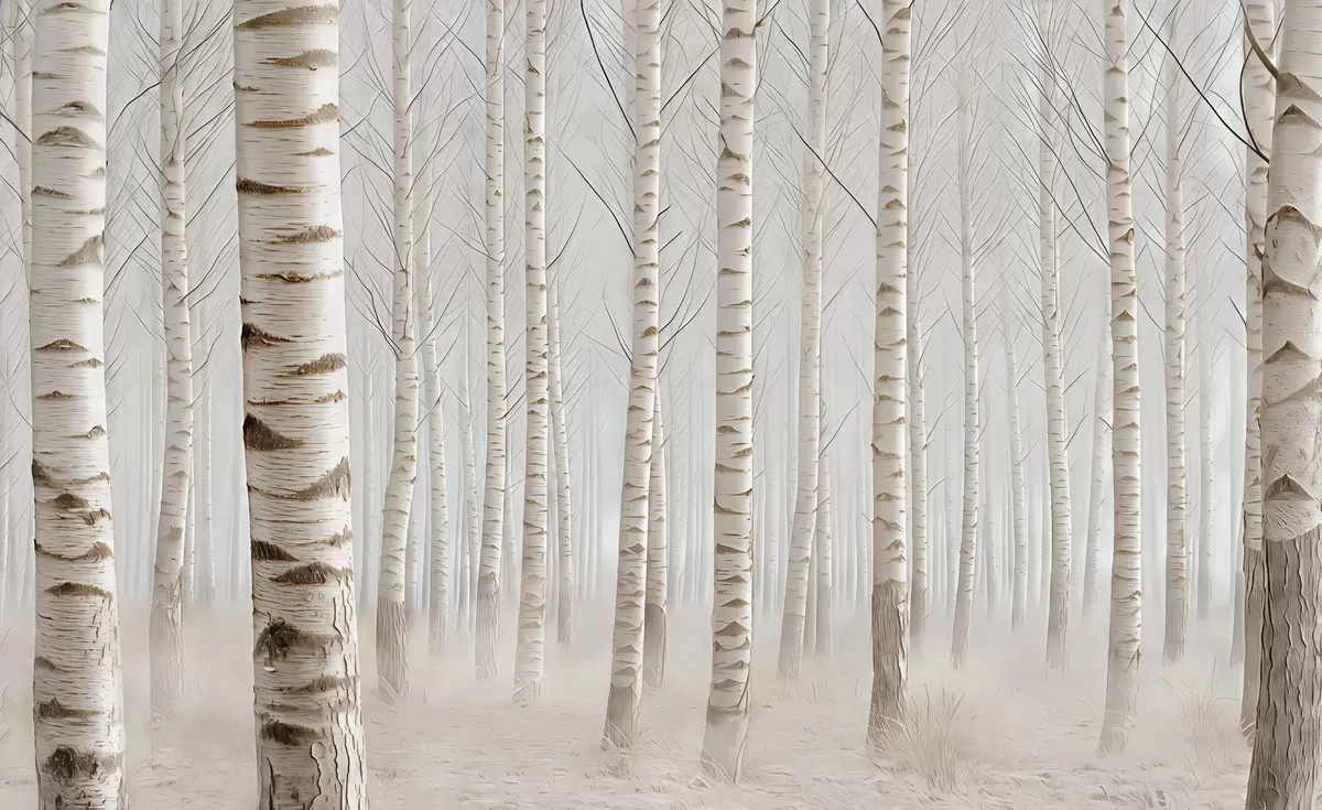 Fotomurales Bosque de abedules en la niebla, minimalismo luminoso Nr. w04574