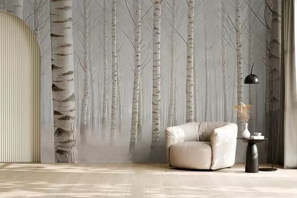 Fotomurales Bosque de abedules en la niebla, minimalismo luminoso Nr. w04574