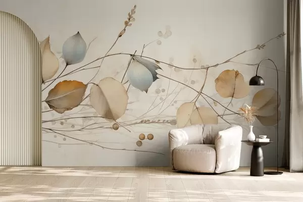 Fotomurales Ramas delicadas con hojas en tonos beige Nr. w04579