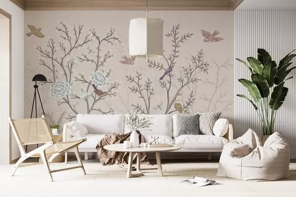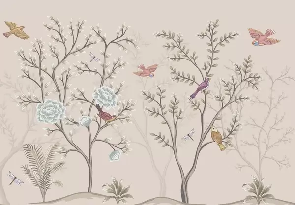 Fotomurales Árboles con pájaros y flores Nr. w04605