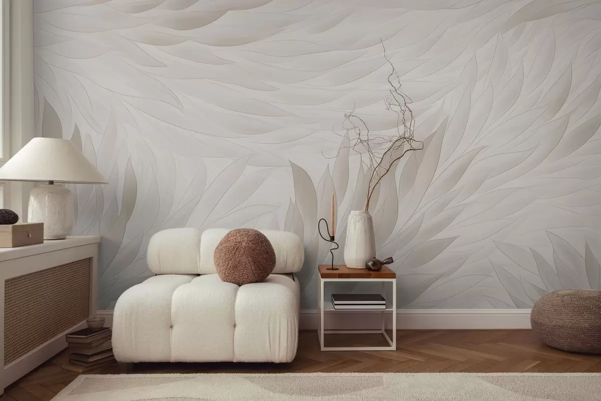 murales de pared Hojas onduladas en suaves tonos crema w04610