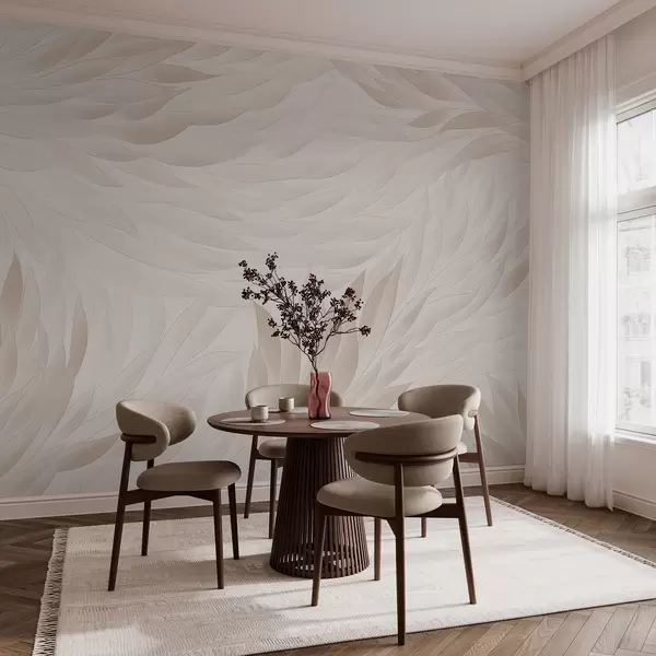 Fotomurales Hojas onduladas en suaves tonos crema Nr. w04610