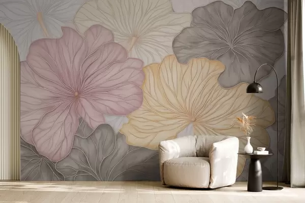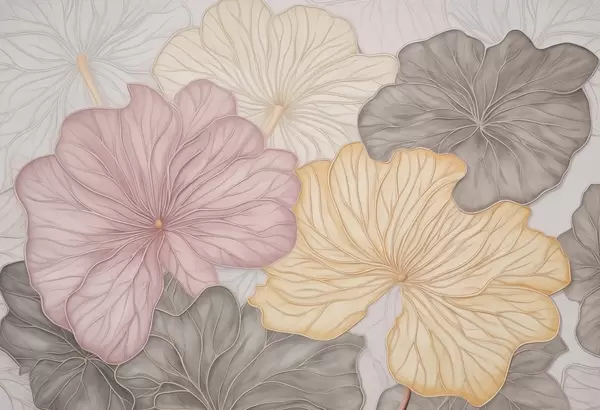 Fotomurales Hojas grandes de color pastel con nervaduras finas Nr. w04612