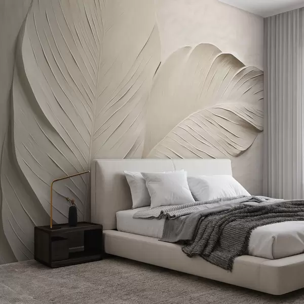 Fotomurales Hojas beige en relieve con sombras suaves Nr. w04614