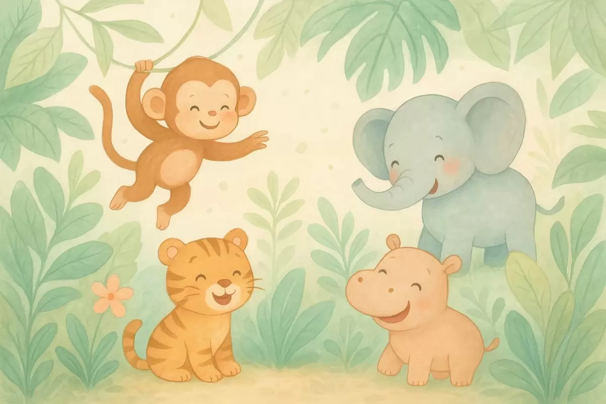 Fotomurales animales bebés adorables en la selva Nr. w04622