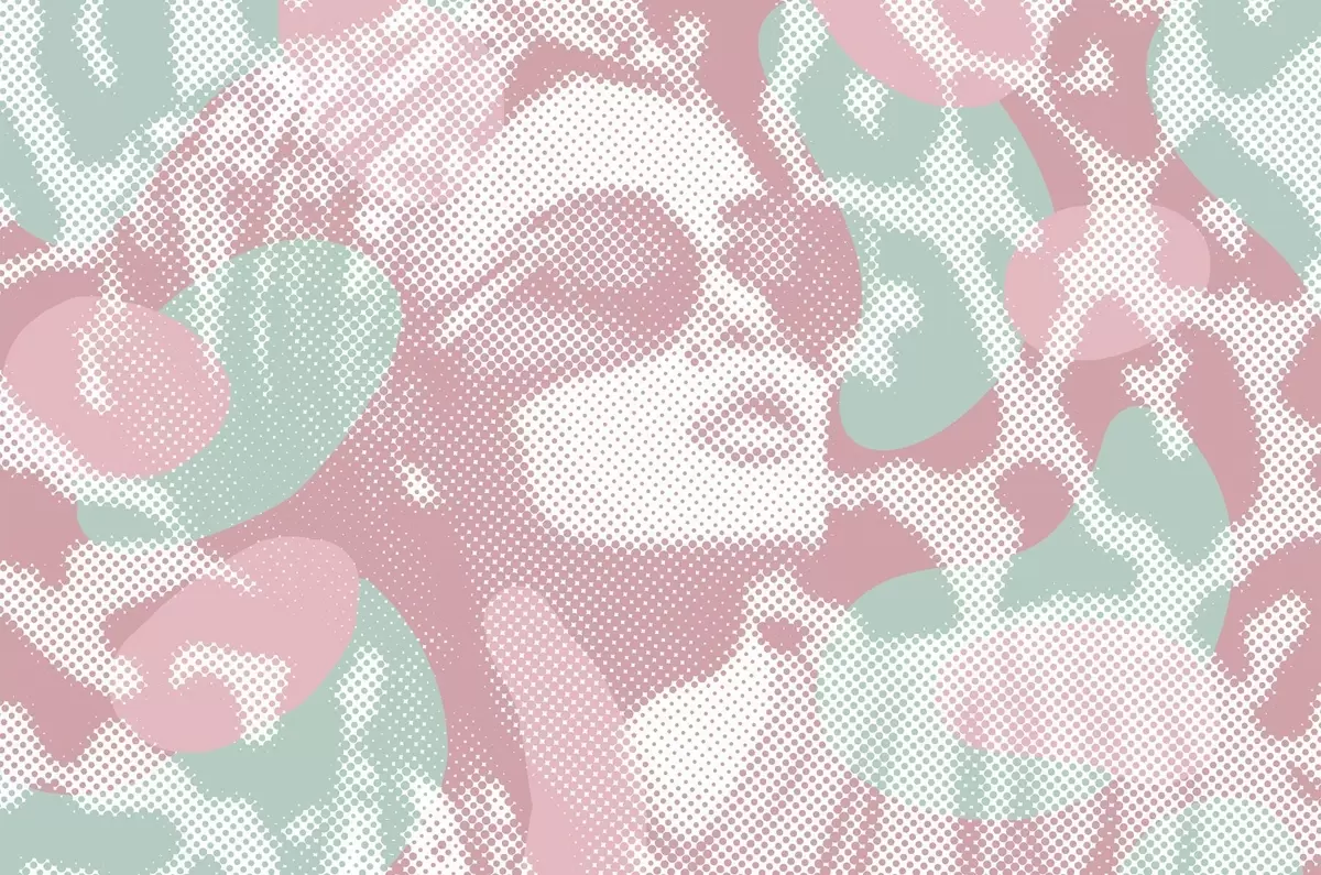 Fotomurales retrato de una mujer sobre un fondo de leopardo en estilo punteado en tonos rosas y verdes Nr. w04630v2