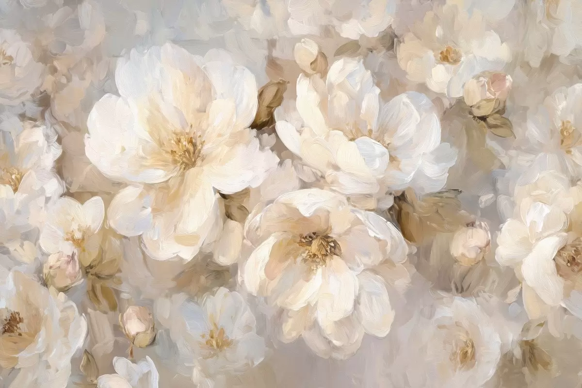 Fotomurales flores grandes en tonos blancos y beige al estilo de la pintura al óleo Nr. w04633