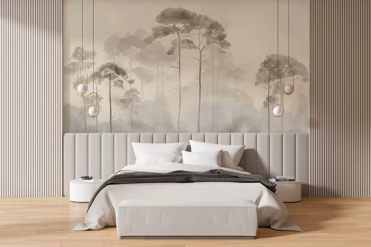 Fotomurales siluetas ligeras de pinos en estilo acuarela Nr. w04634