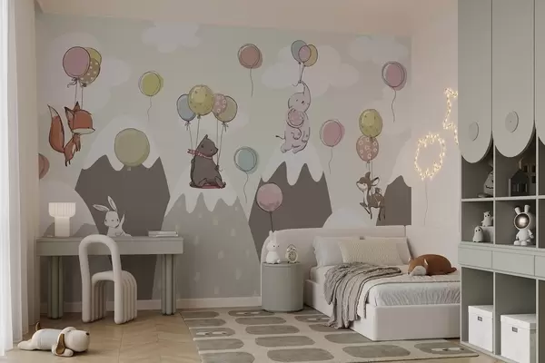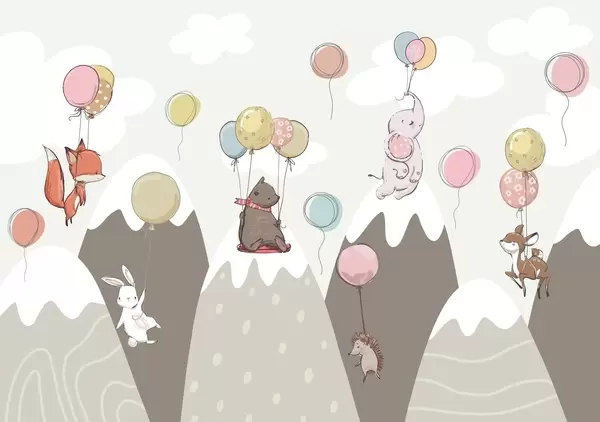 Fotomurales Montañas escandinavas infantiles con animales Nr. w04651