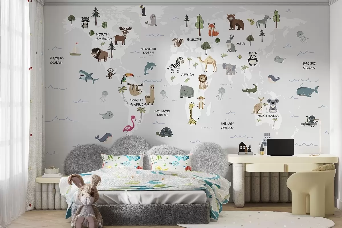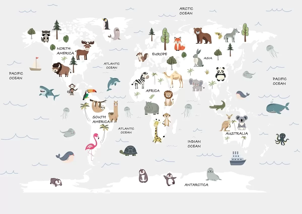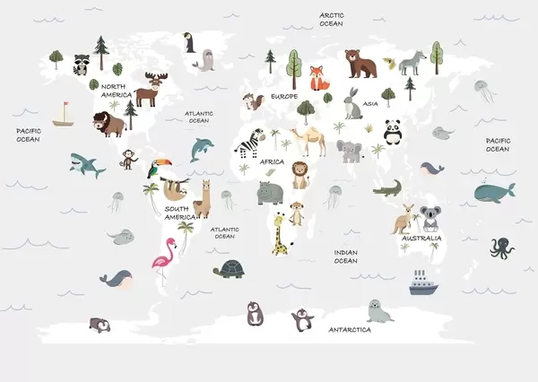 Fotomurales Mapa del mundo con animales Nr. w04663