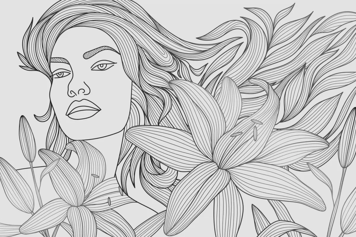 Fotomurales Retrato de una niña entre flores de lirio Nr. w04689