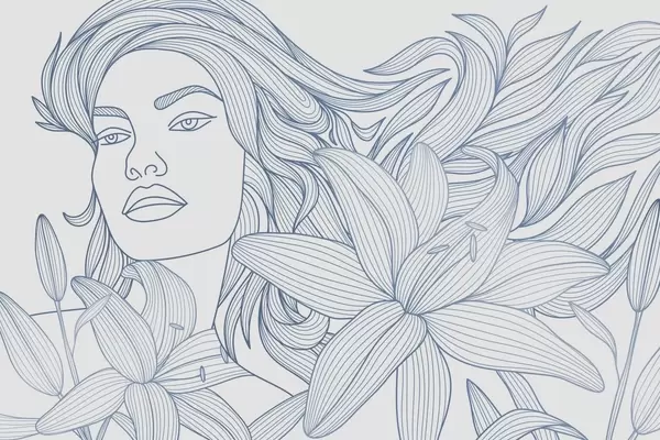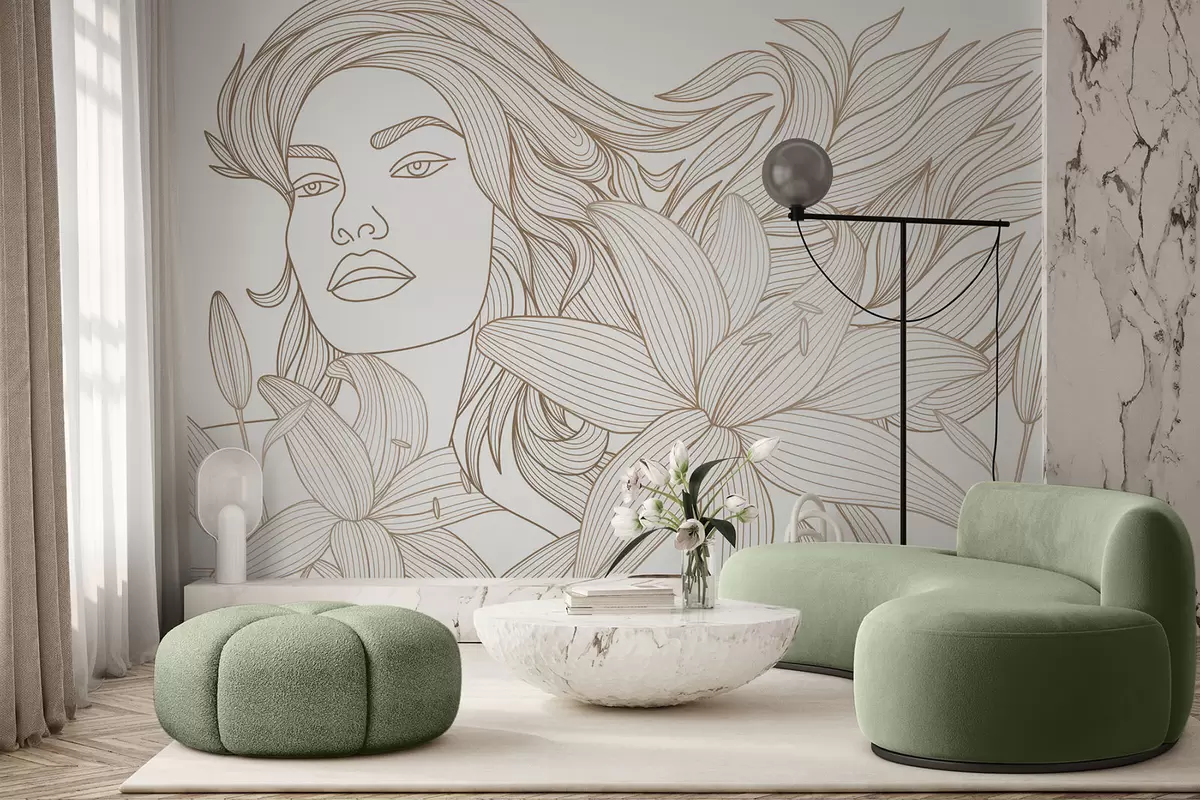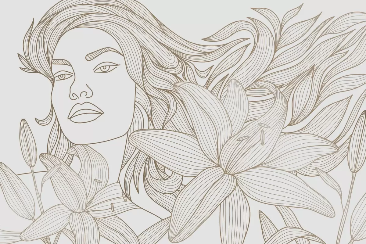 Fotomurales Retrato de una niña entre lirios en tonos beige Nr. w04689v1