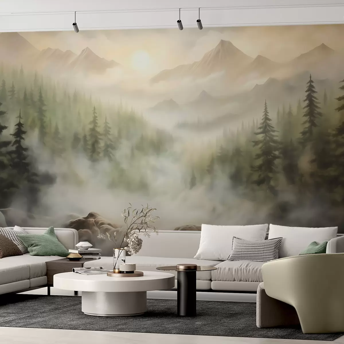 Fotomurales Bosque en la niebla con las montañas como telón de fondo Nr. w04730
