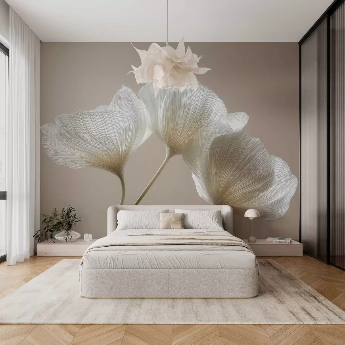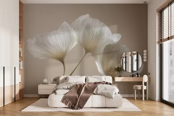 Fotomurales tres delicadas flores sobre un fondo beige Nr. w04810