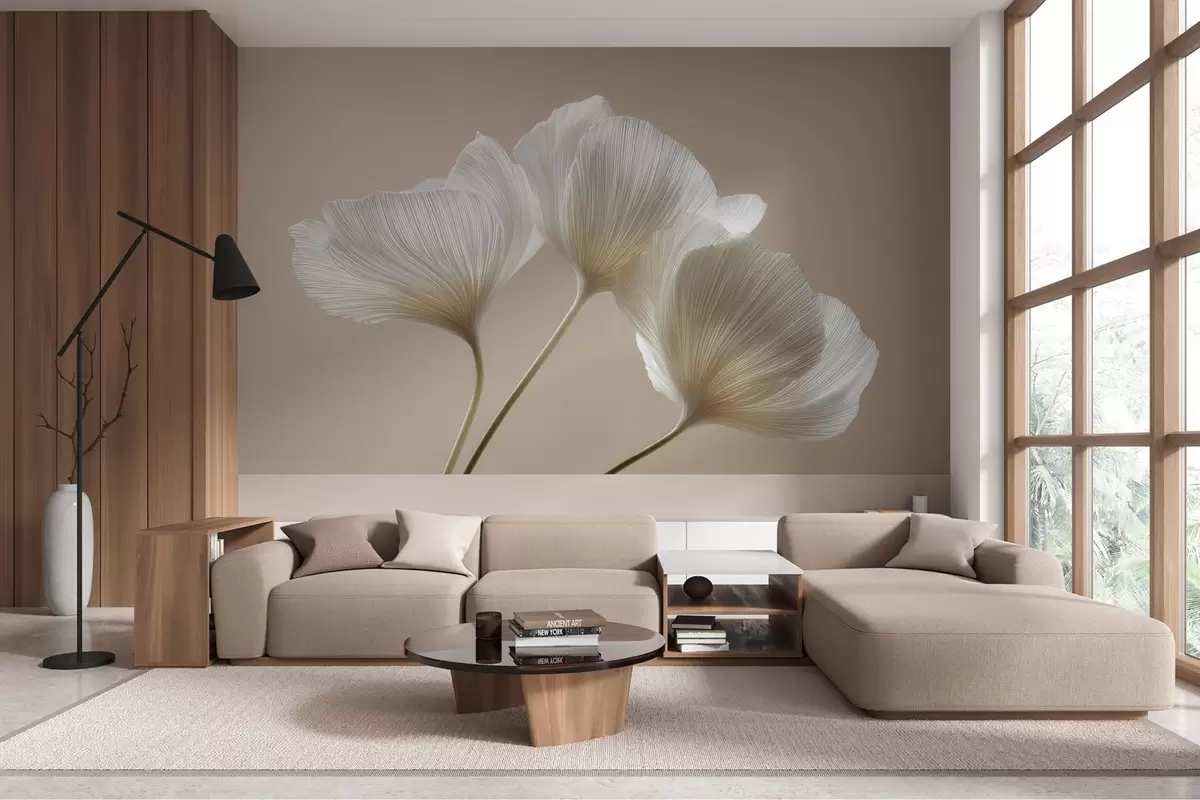 murales de pared tres delicadas flores sobre un fondo beige w04810
