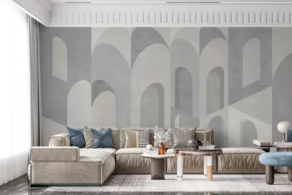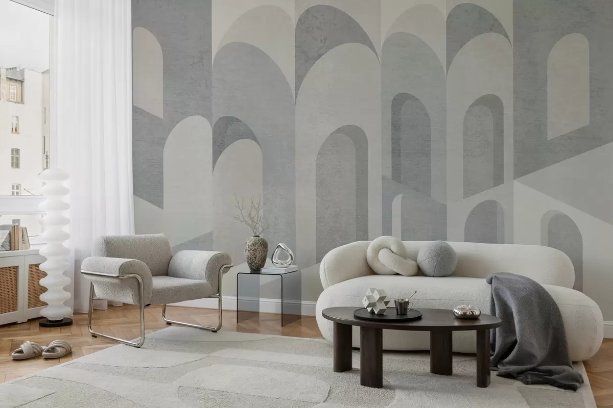 murales de pared metamorfosis urbanas del arco en tonos grises y beige frío w04812v1