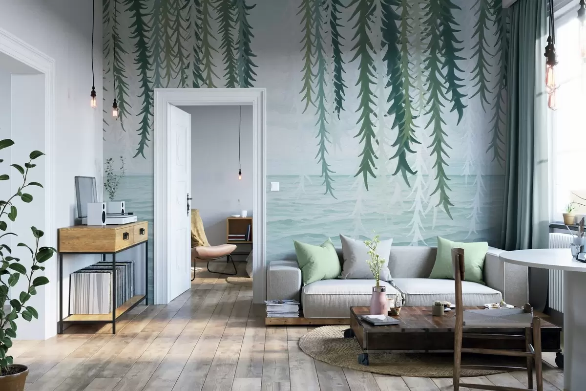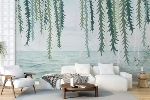 Fotomurales Delicadas enredaderas colgando sobre el agua, estilo acuarela Nr. w04830