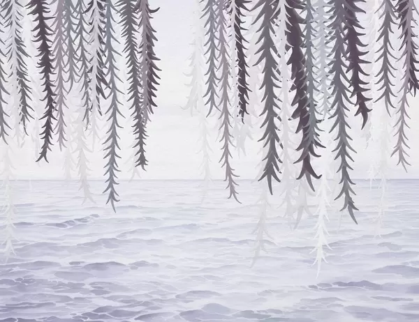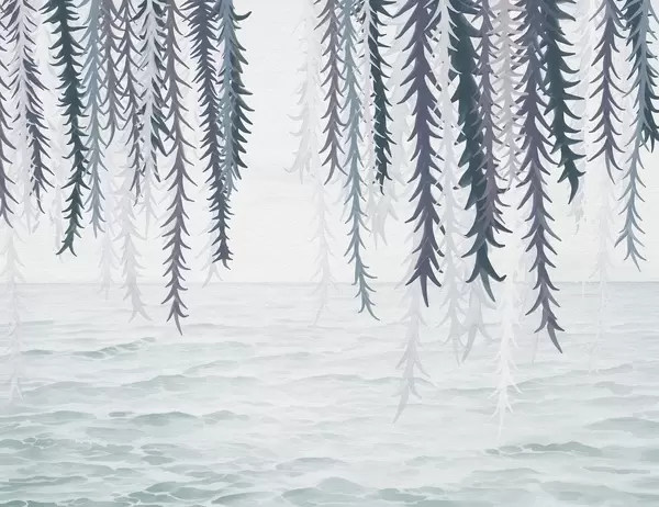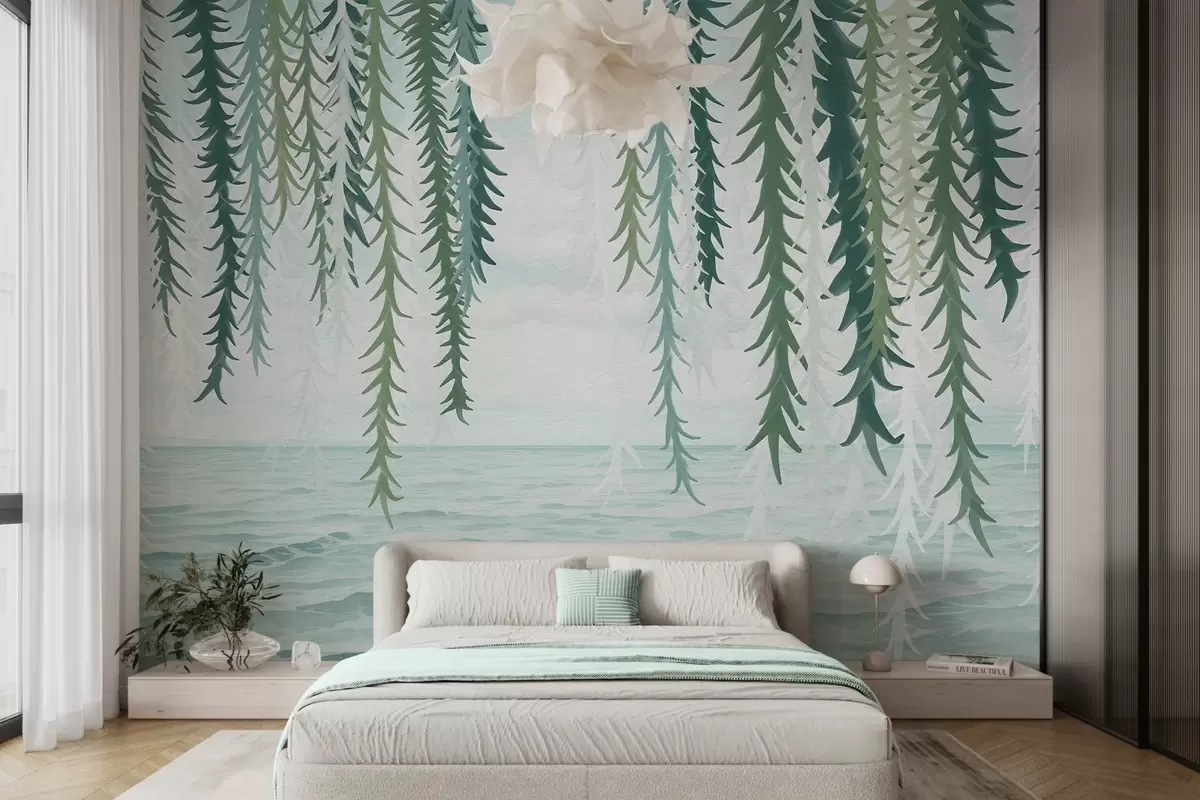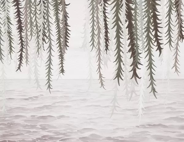 Fotomurales Delicadas enredaderas colgando sobre el agua, estilo acuarela Nr. w04830