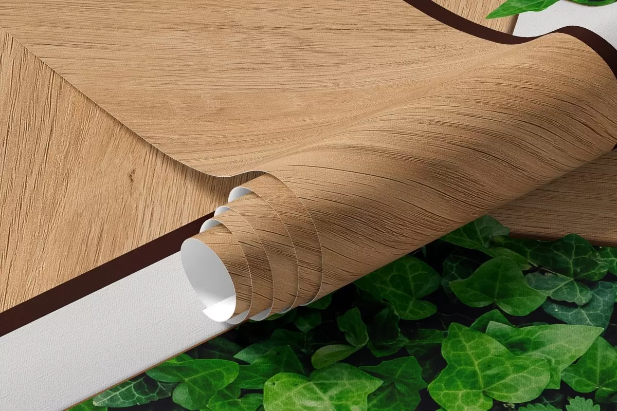 Fotomurales imitación de paneles de madera clara con inserciones vegetales Nr. w04875