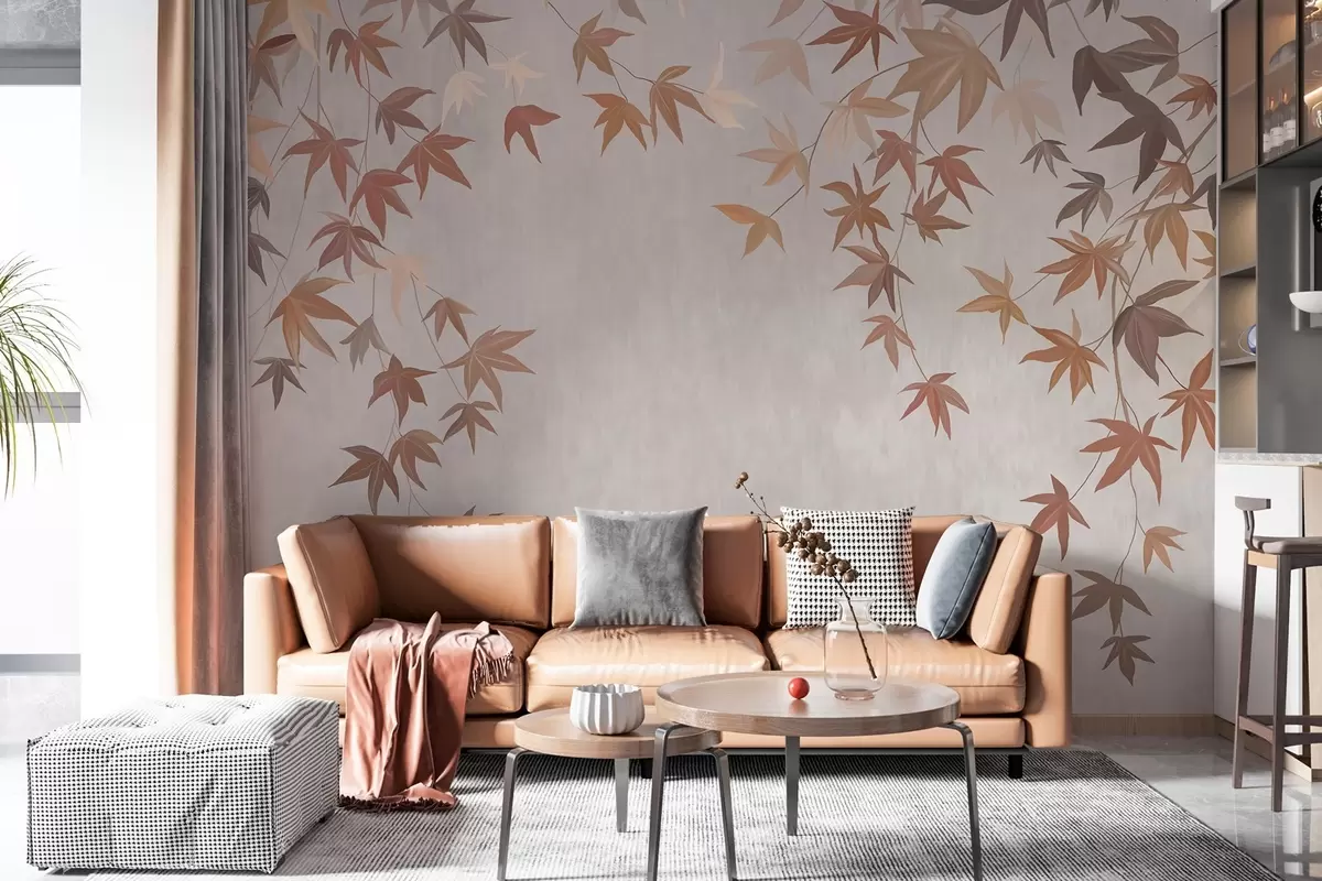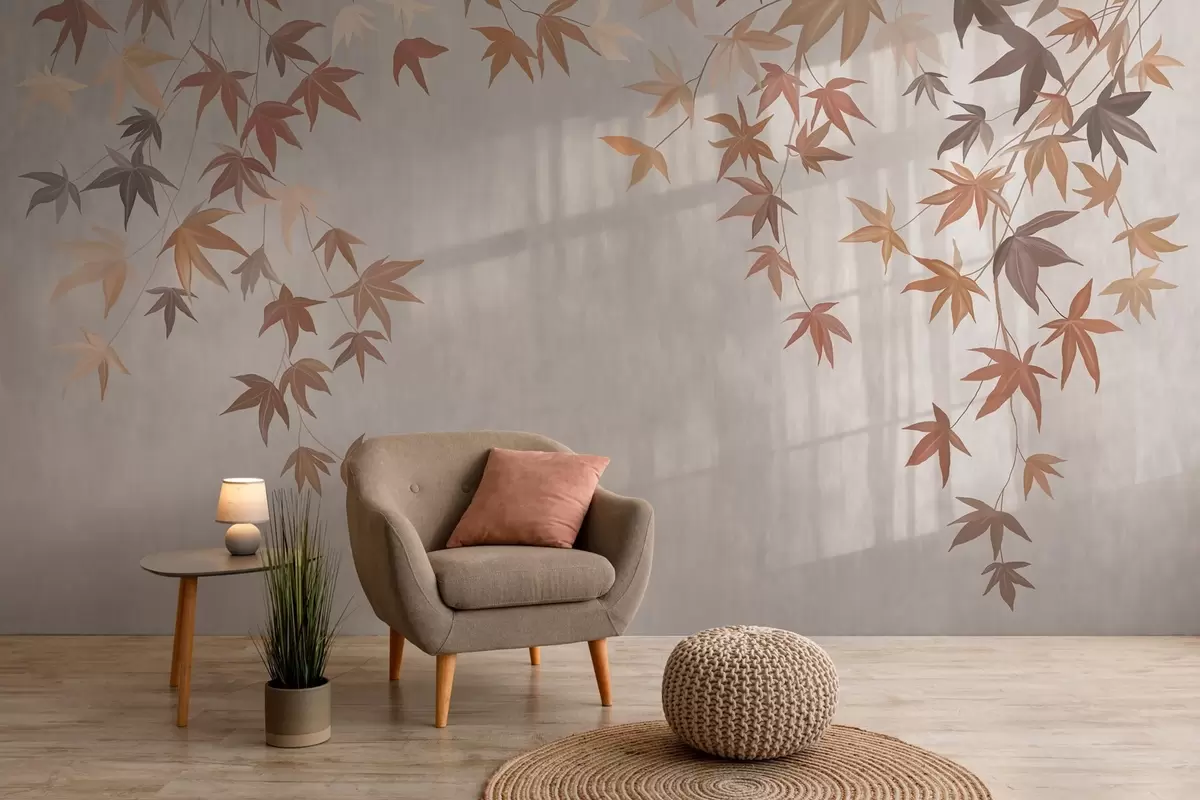Fotomurales Hojas de hiedra multicolores cayendo desde arriba al estilo de una pintura al óleo. Nr. w04878