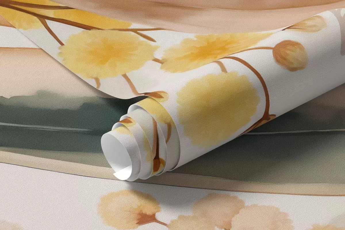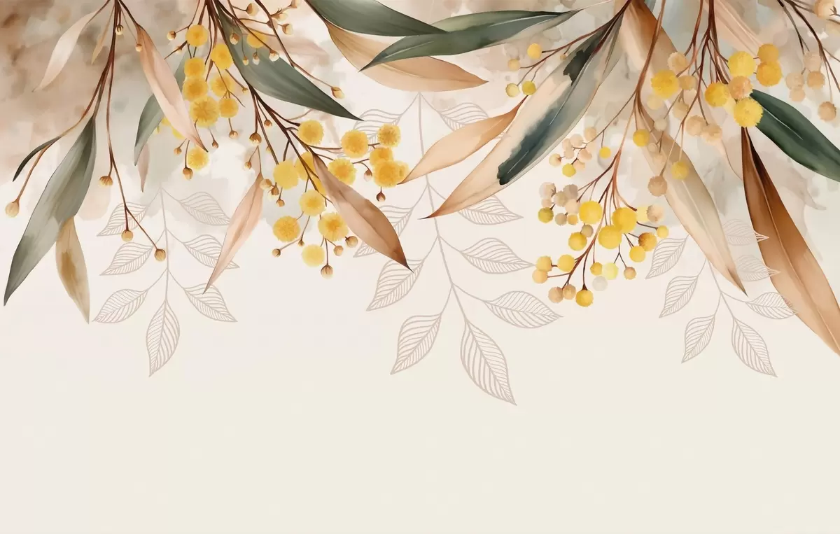 Fotomurales flores y hojas de mimosa cayendo desde arriba en estilo acuarela Nr. w04880