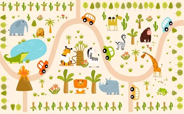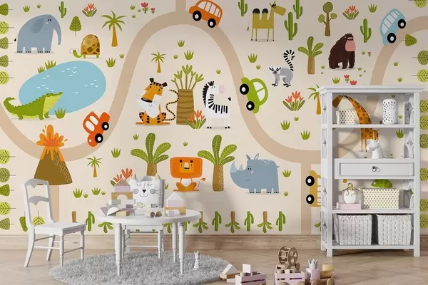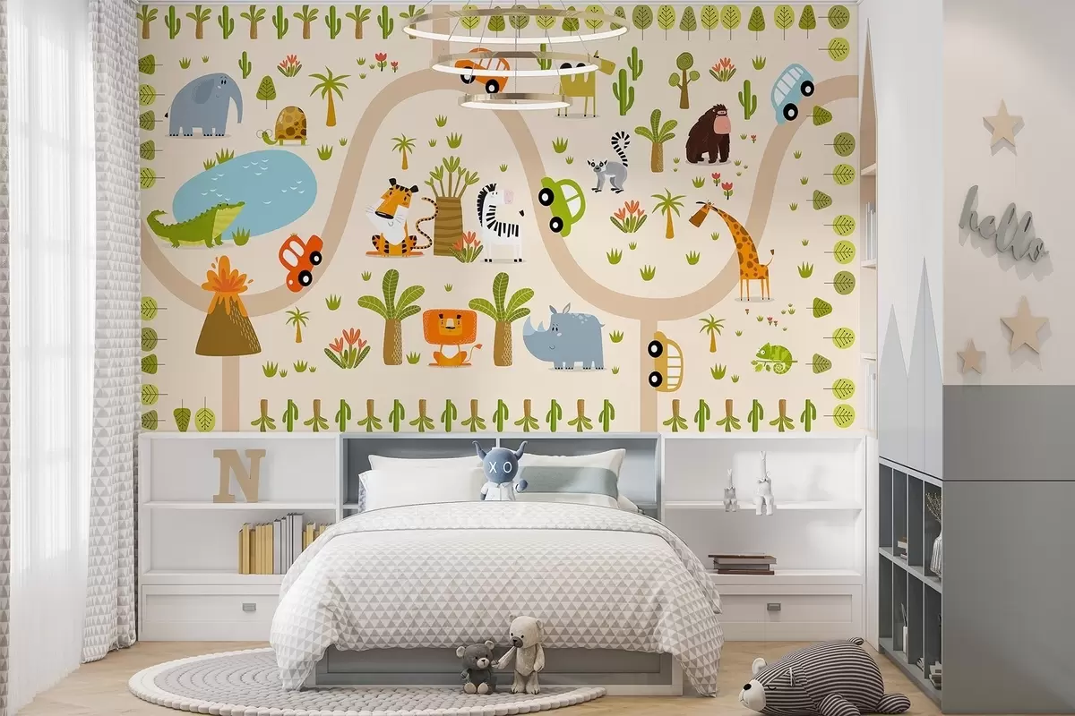 Fotomurales Safari con animales y coches Nr. w04931