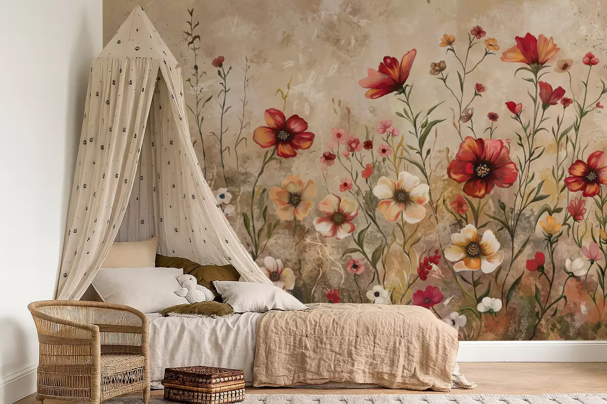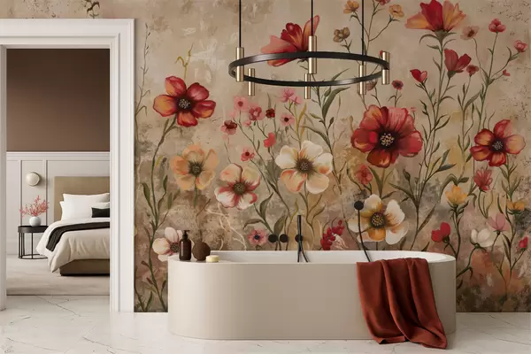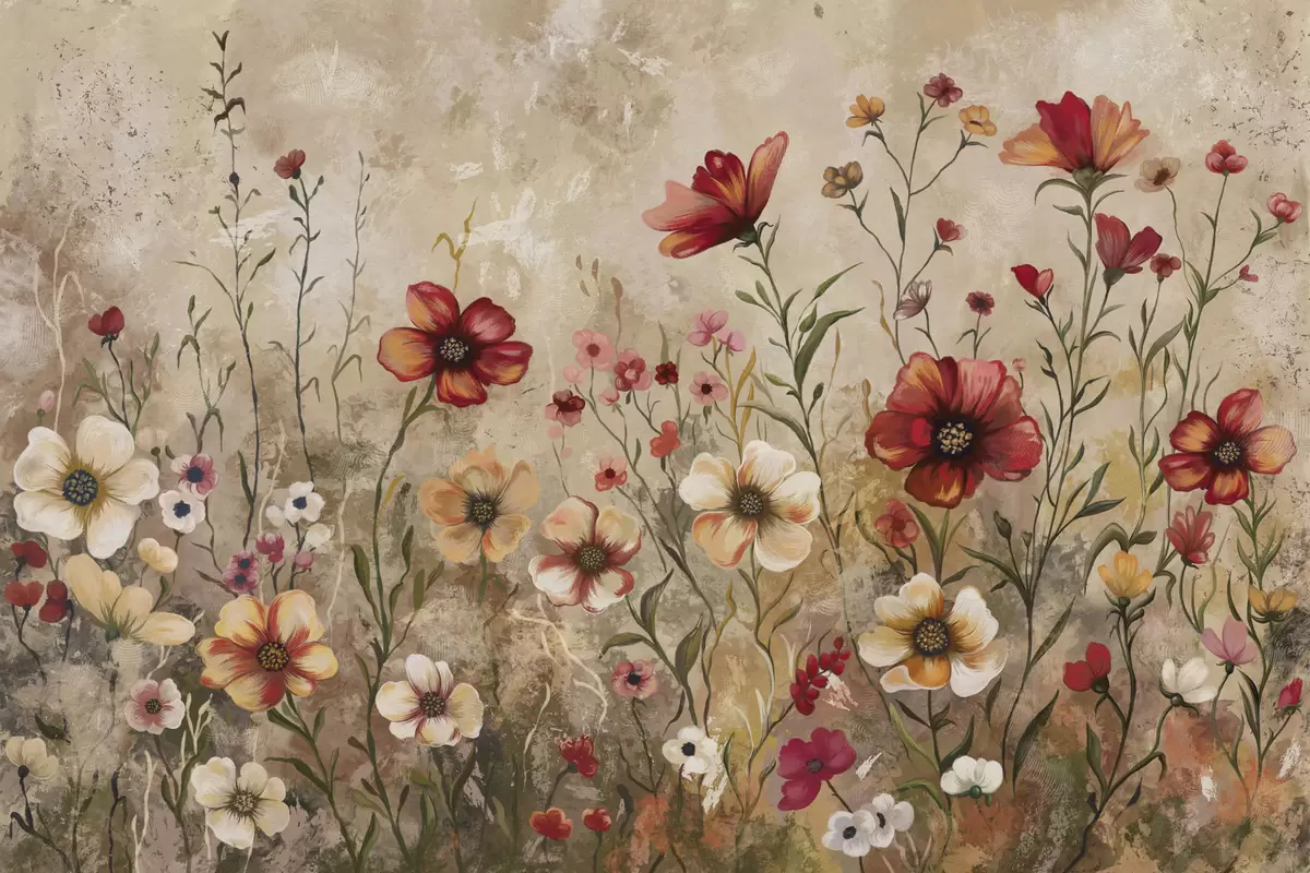 Fotomurales Composición floral con fondo texturizado en tonos cálidos Nr. w05016