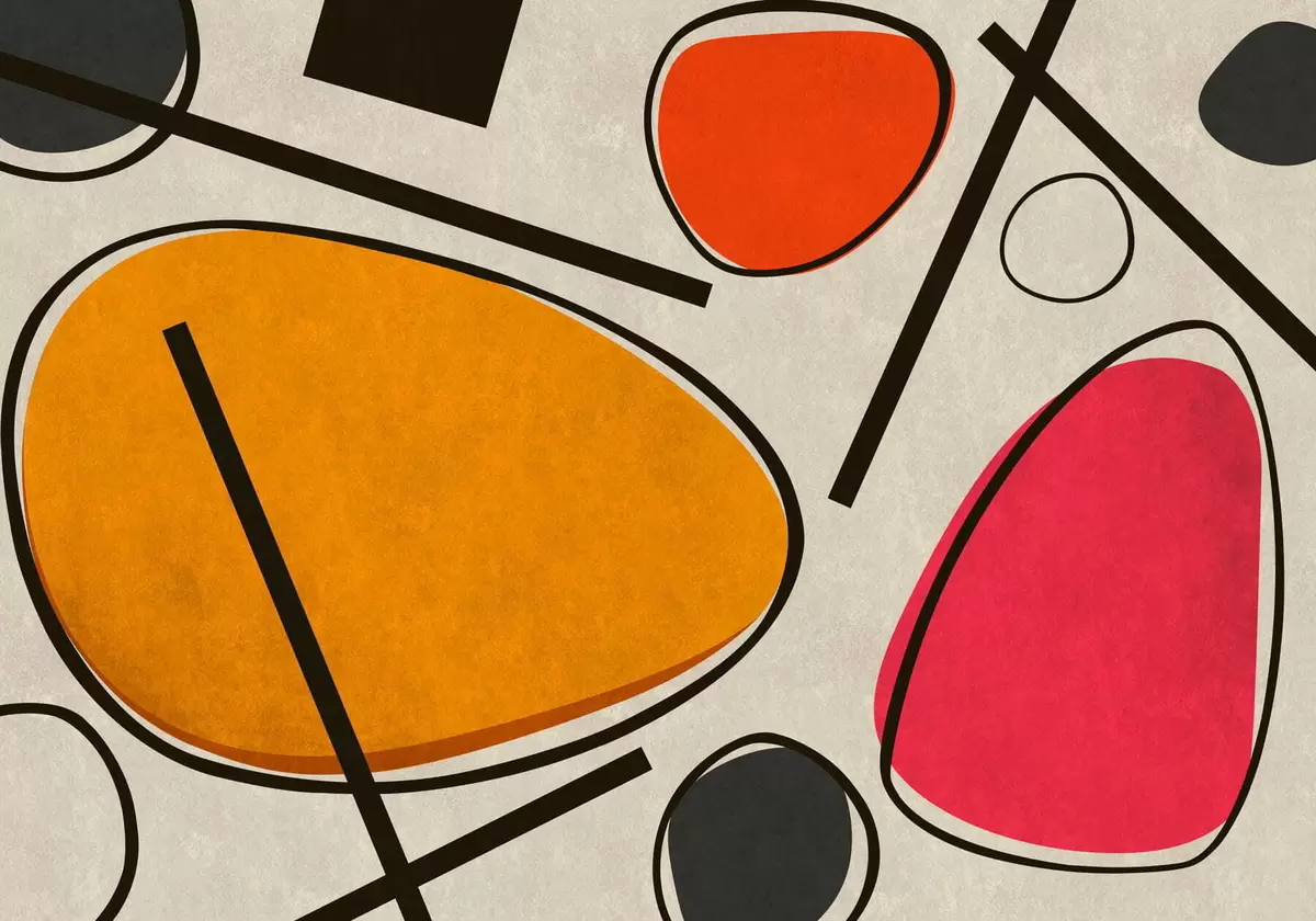 Fotomurales Formas abstractas y líneas con campos de colores vivos. Nr. w05017