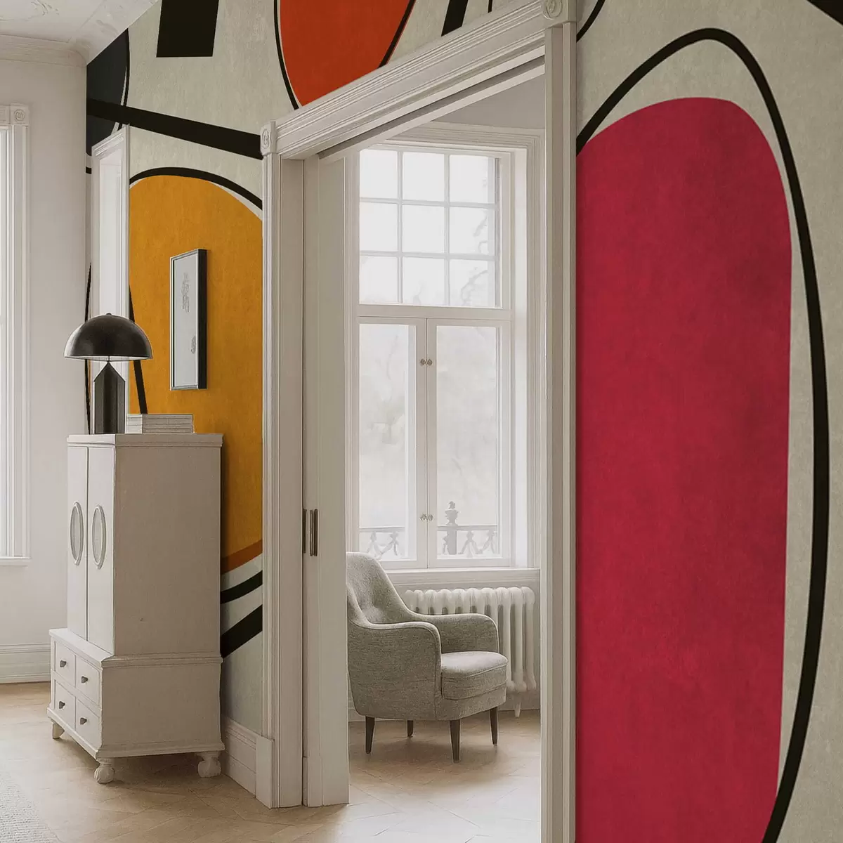 Fotomurales Formas abstractas y líneas con campos de colores vivos. Nr. w05017