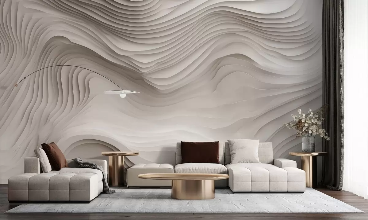 Fotomurales imitación de voluminosos relieves escalonados en tonos beige Nr. w05061v1