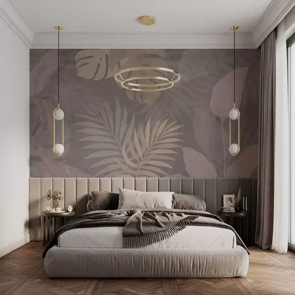Fotomurales Hojas tropicales con textura sobre fondo gris. Nr. w05063v1