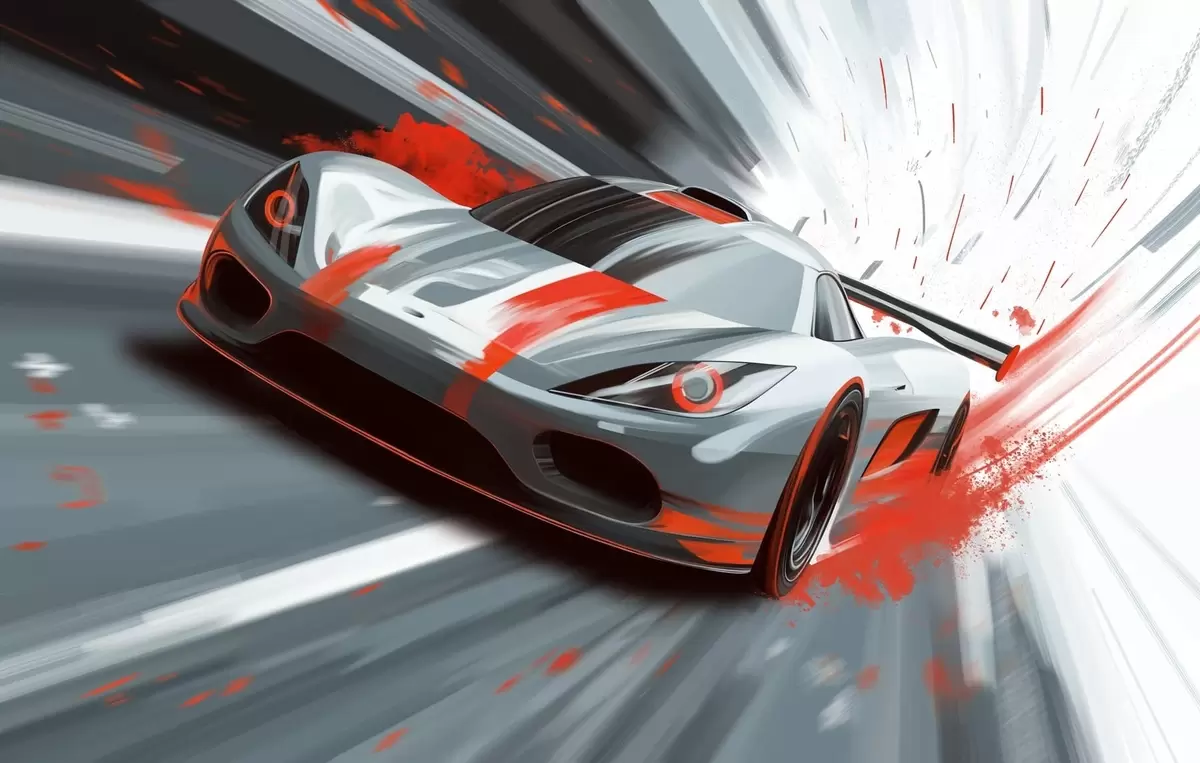 Fotomurales Coche deportivo dinámico en estilo de dibujo digital con detalles en rojo. Nr. w05069v1