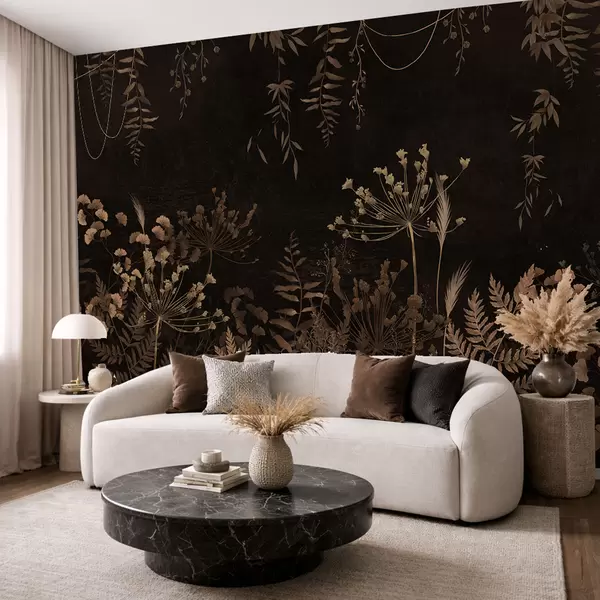 Fotomurales Diseño botánico oscuro con flores y hierbas. Nr. w05092v3