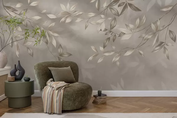 Fotomurales Elegantes ramas frondosas en tonos beige sobre un fondo claro. Nr. w05113