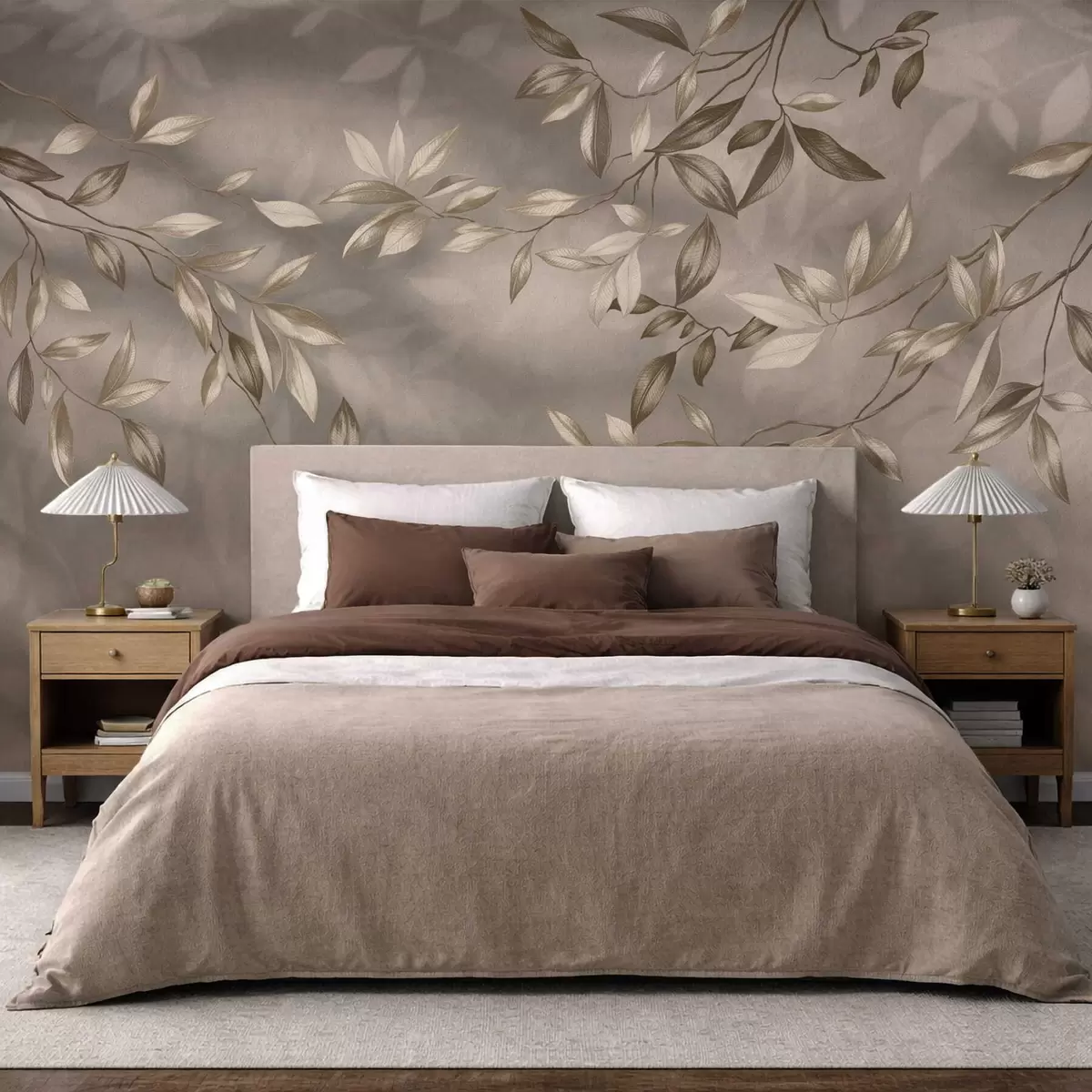 Fotomurales Delicadas ramas frondosas en tonos beige sobre un fondo claro. Nr. w05113v2