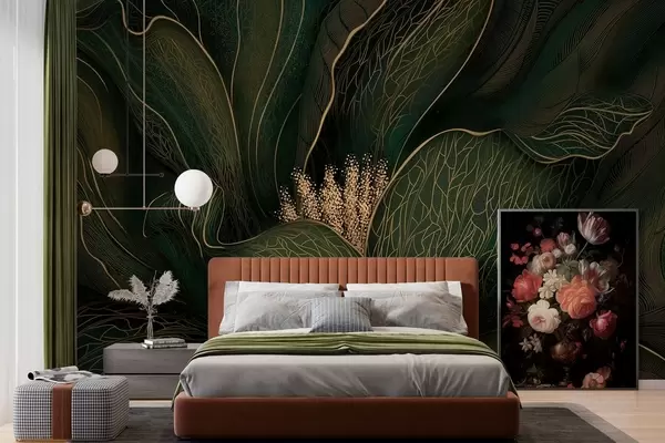 Fotomurales Flor abstracta de color verde oscuro con detalles de líneas finas Nr. w05119v1