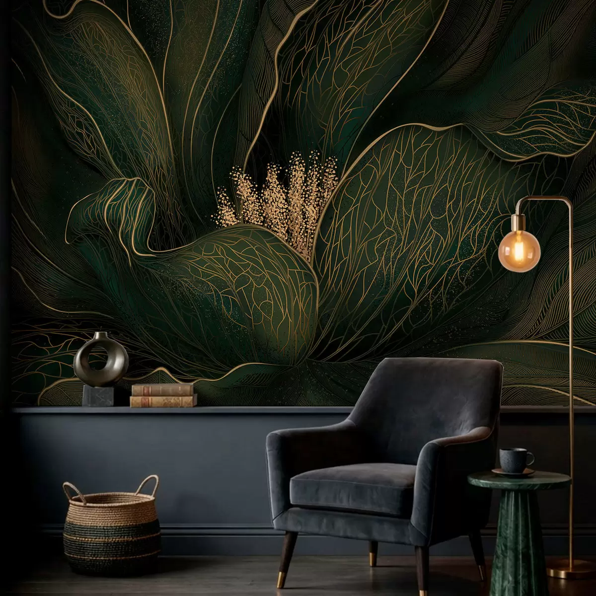 Fotomurales Flor abstracta de color verde oscuro con detalles de líneas finas Nr. w05119v1