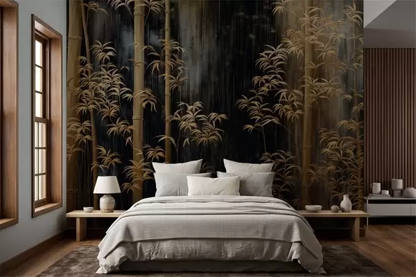 Fotomurales Bambú oscuro sobre fondo negro Nr. w05120